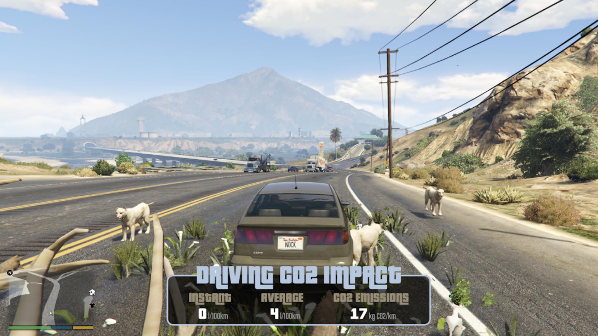 A fully operational mod where any GTA V player can see the relative emissions of any road vehicle.
